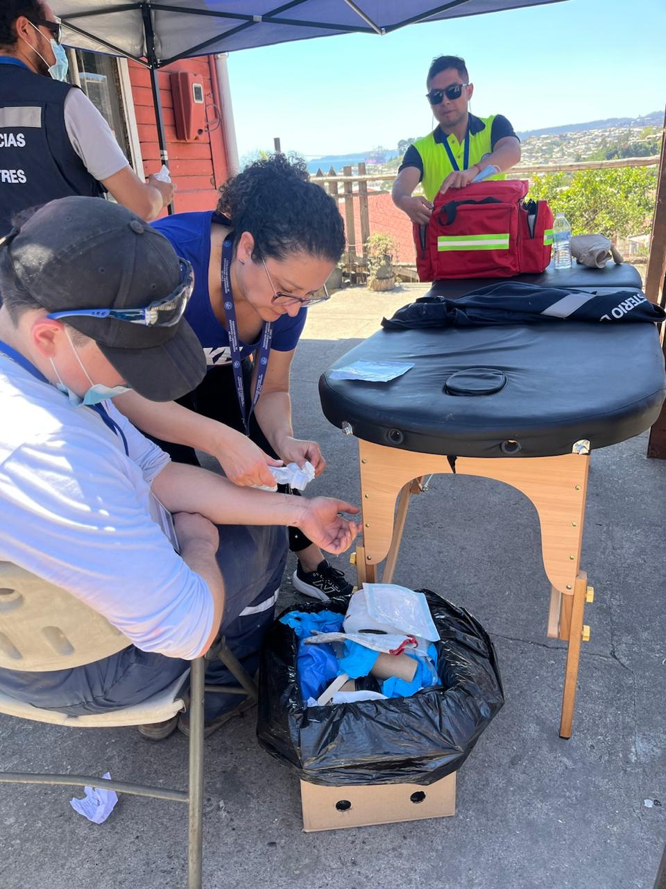 La doctora Yasna Fernández, encargada del Departamento de Gestión Asistencial del SSVQP, llegó hasta Talcahuano para ejercer como médico de familia en las zonas afectadas, atendiendo in situ a las y los damnificados y principalmente, a quienes se encuentran realizando trabajos de limpieza y remoción de escombros; quienes son afectados por el calor, el cansancio, deshidratación e incluso accidentes propios de la labor.