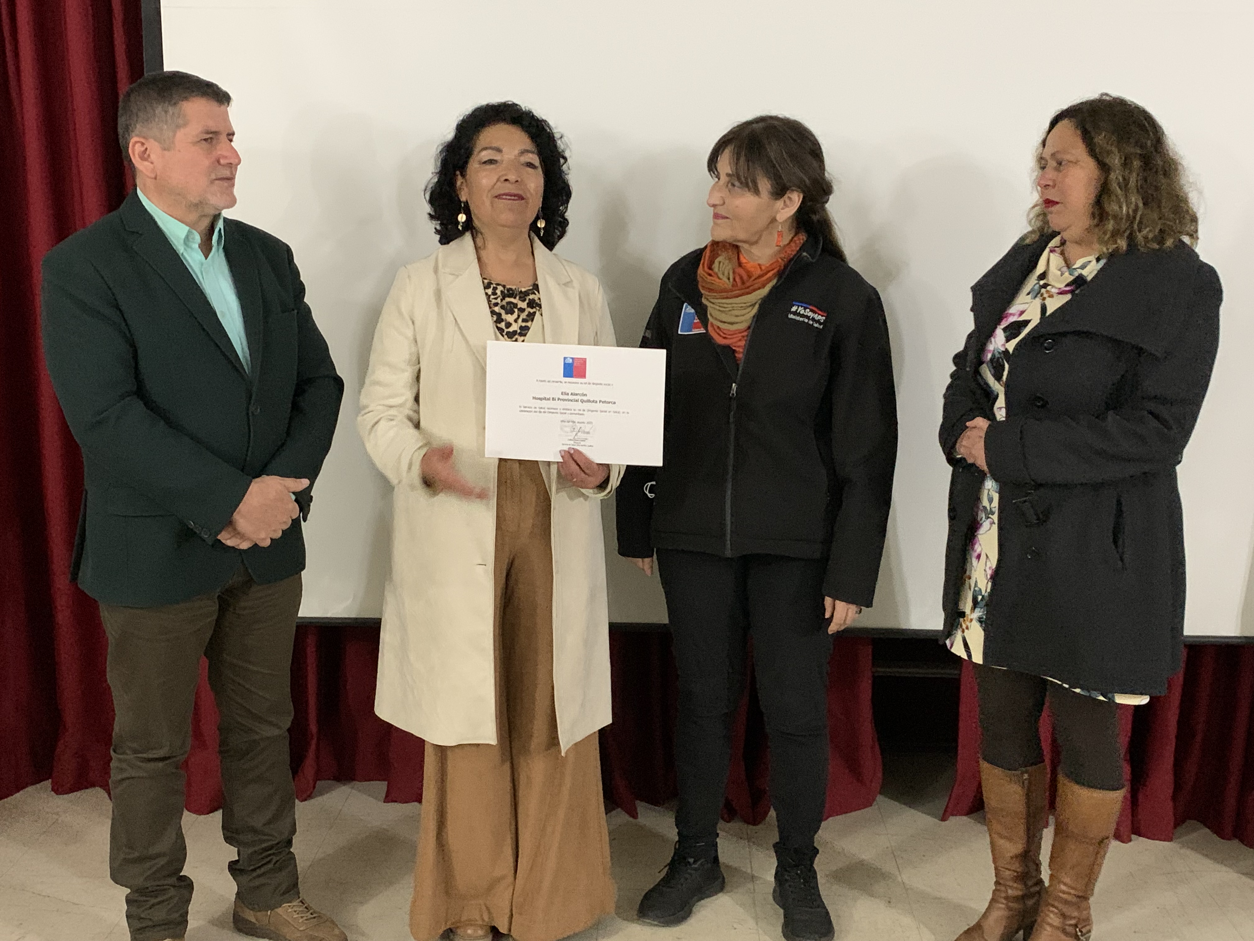 Por su parte Elia Alarcón, voluntaria en salud, recibió su reconocimiento al estar ligada durante 28 años a la actividad social, primero en el ex Hospital San Martín, y actualmente en el Hospital Biprovincial Quillota Petorca. La destacada dirigente social indicó que “es un trabajo silencioso hacia la comunidad y para mí fue muy emotivo porque no me lo esperaba. Siempre hay personas antes en las que uno considera el trabajo que hacen, pero es muy bonito que el Servicio de Salud haya dado este reconocimiento a muchos dirigentes de los hospitales de acá de la provincia. Es un trabajo silencioso, pero con mucho amor el que uno hace”.